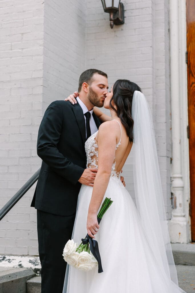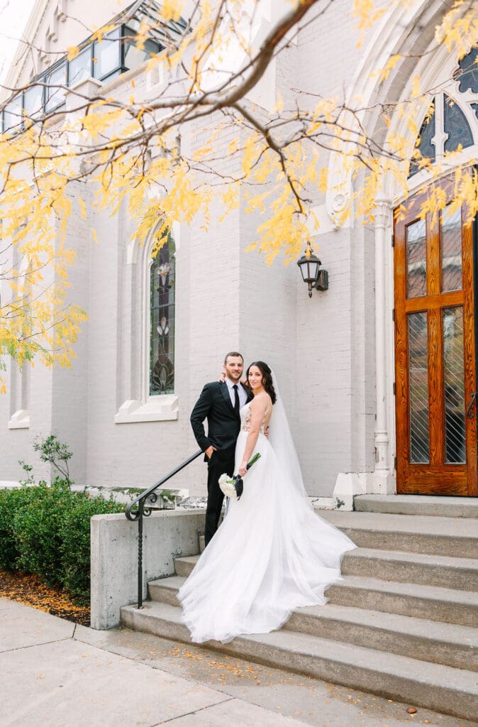 Michigan weather in the fall can be unpredictable, but Katie and Ben were fortunate. A looming storm held off just long enough for portraits around the church and a nearby fire station, a meaningful nod to Ben’s career in law enforcement. The timing could not have worked out better. The rain finally arrived late in the evening, well after all outdoor photos were complete.